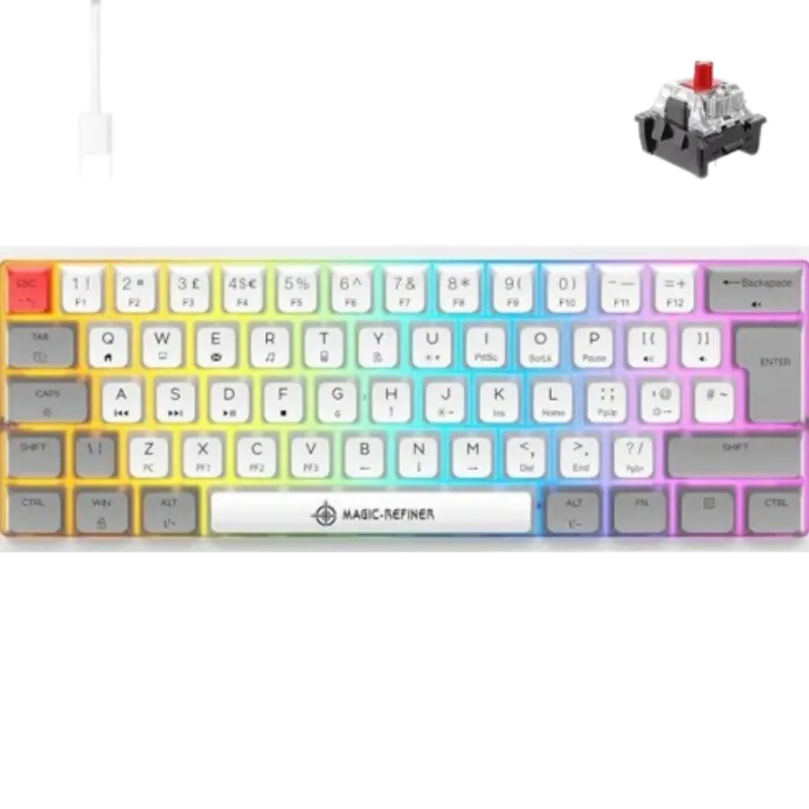 MAGIC-REFINER MK22 Compact 60% Mechanical Gaming Keyboard with all key Anti-ghosting , 61 Key Rainbow RGB Backlit Metal Plate Type-C