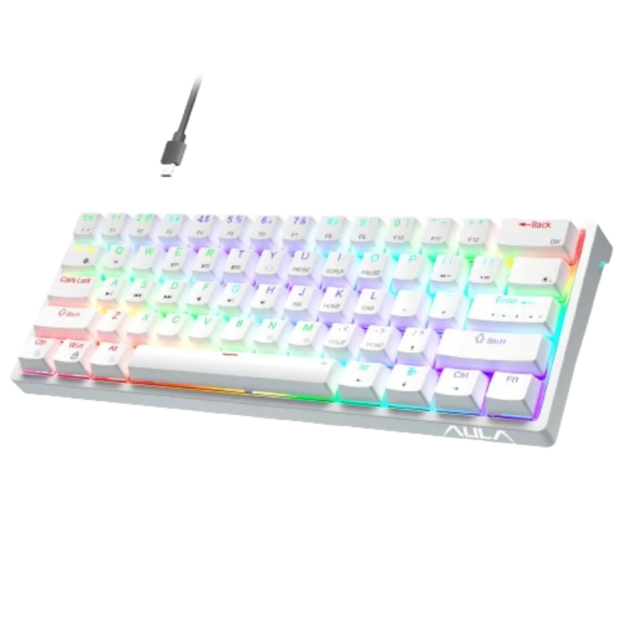 AULA F3261 Mechanical Keyboard Gaming, Gaming Keyboard 60 Percent Keyboard Cable Gaming Keyboard Small, RGB PC Keyboard for Computer/Tablet/PS/Xbox, QWERTY, Red Switches - Black